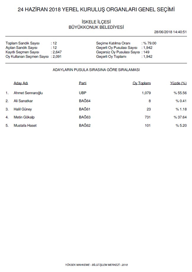| Yayın Adı | 24 Haziran 2018 yerel kuruluş organları genel seçimi: İskele ilçesi |