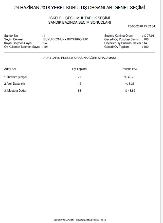 | Yayın Adı | 24 Haziran 2018 yerel kuruluş organları genel seçimi: İskele ilçesi-Muhtarlık seçimi |