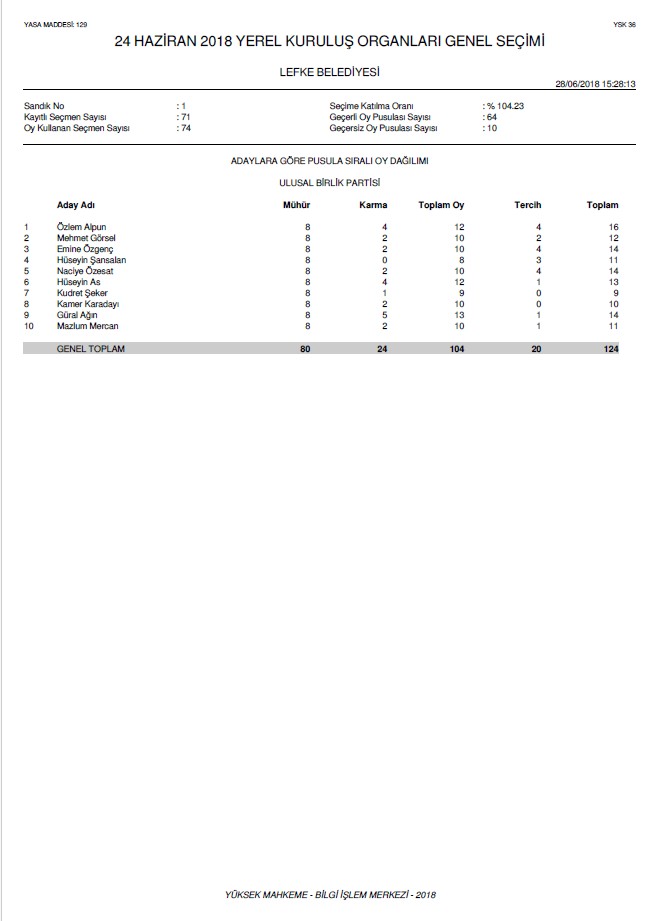 | Yayın Adı | 24 Haziran 2018 yerel kuruluş organları genel seçimi: Lefke Belediyesi |
