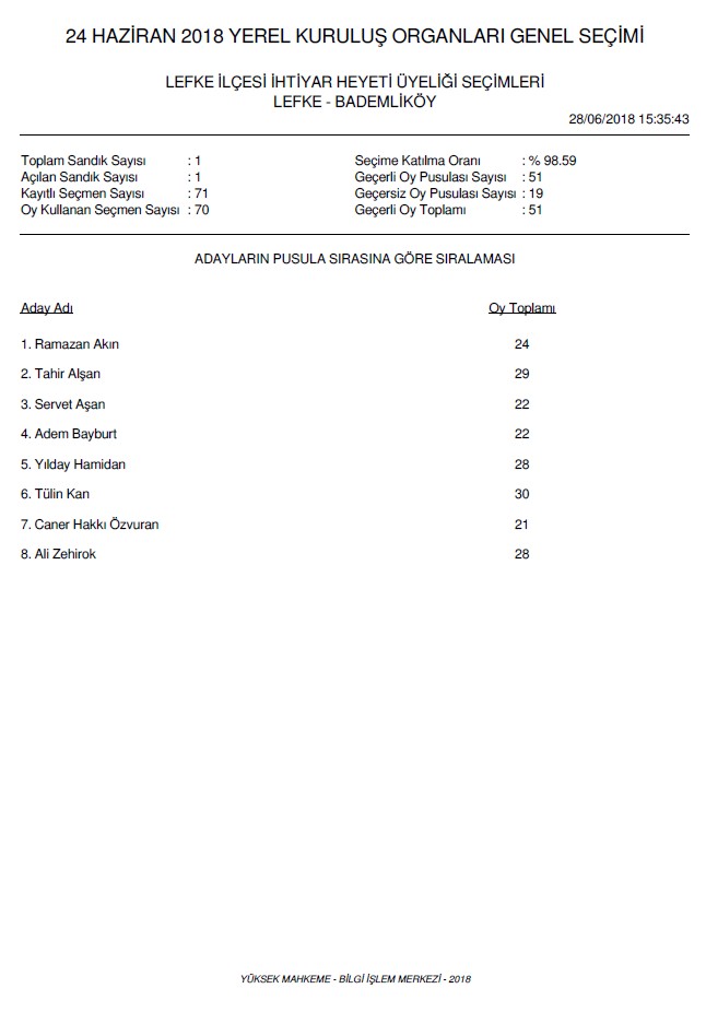| Yayın Adı | 24 Haziran 2018 yerel kuruluş organları genel seçimi: Lefke ilçesi ihtiyar heyeti üyeliği seçimleri |