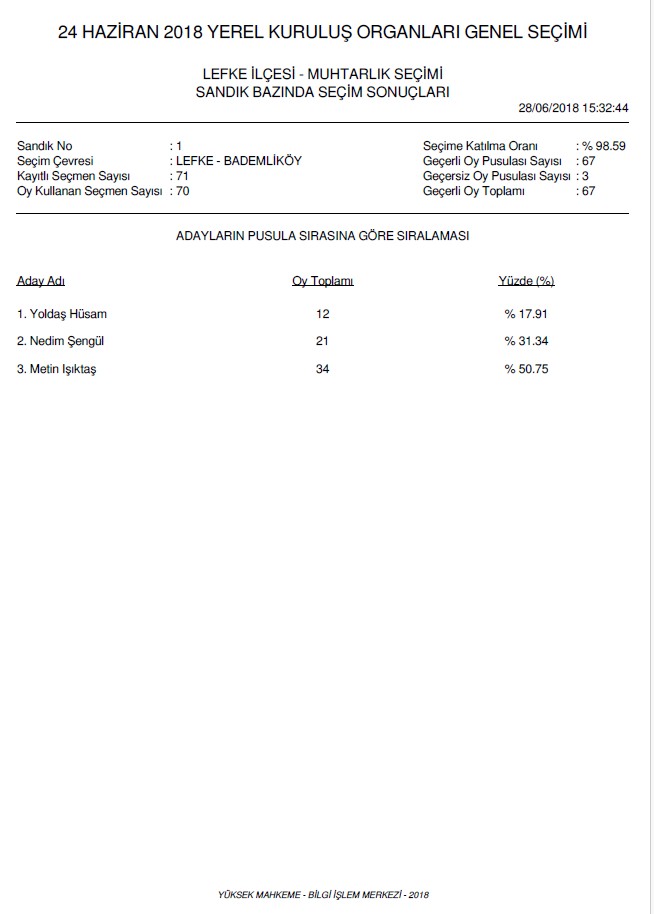 | Yayın Adı | 24 Haziran 2018 yerel kuruluş organları genel seçimi: Lefke ilçesi-Muhtarlık seçimi |