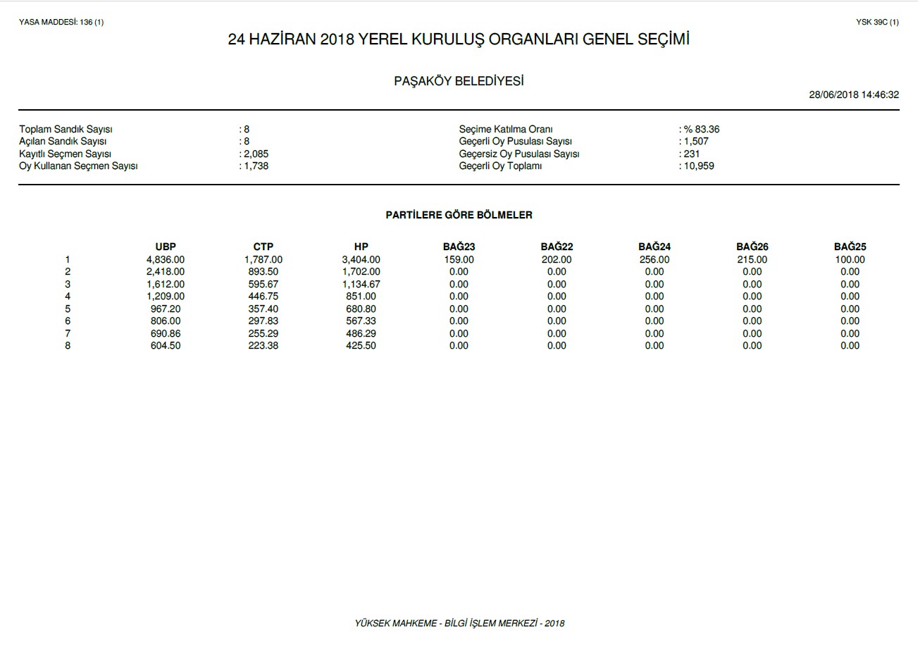 | Yayın Adı | 24 Haziran 2018 yerel kuruluş organları genel seçimi: Paşaköy Belediyesi |