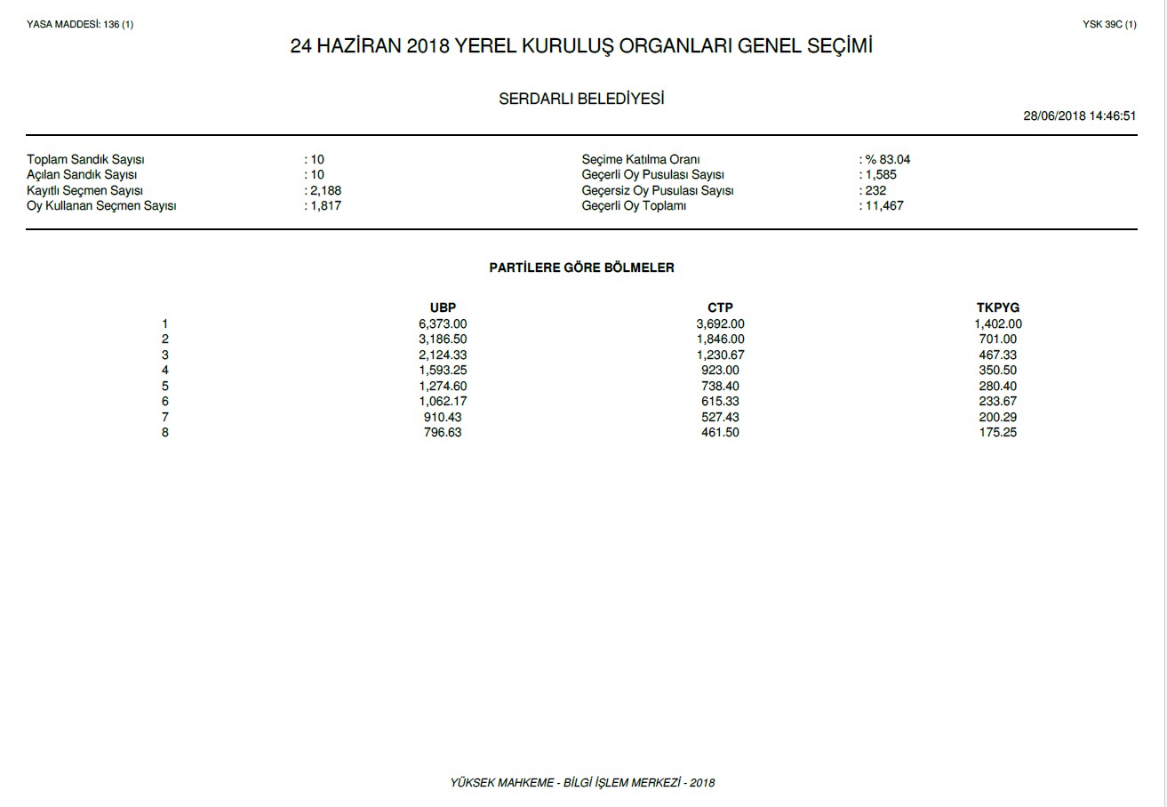 | Yayın Adı | 24 Haziran 2018 yerel kuruluş organları genel seçimi: Serdarlı Belediyesi |