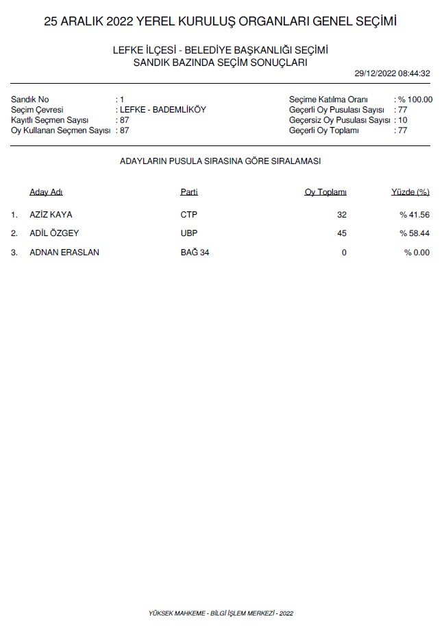 | Yayın Adı | 25 Aralık 2022 yerel kuruluş organları genel seçimi: Lefke ilçesi-Belediye başkanlığı seçimi |
