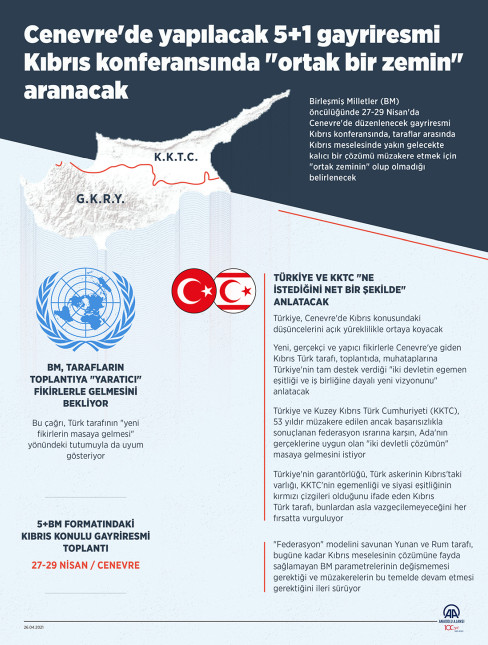 Birleşmiş Milletler (BM) öncülüğünde 27-29 Nisan’da Cenevre’de düzenlenecek gayriresmi Kıbrıs konferansında, taraflar arasında Kıbrıs meselesinde yakın gelecekte kalıcı bir çözümü müzakere etmek için “ortak zeminin” olup olmadığı belirlenecek.