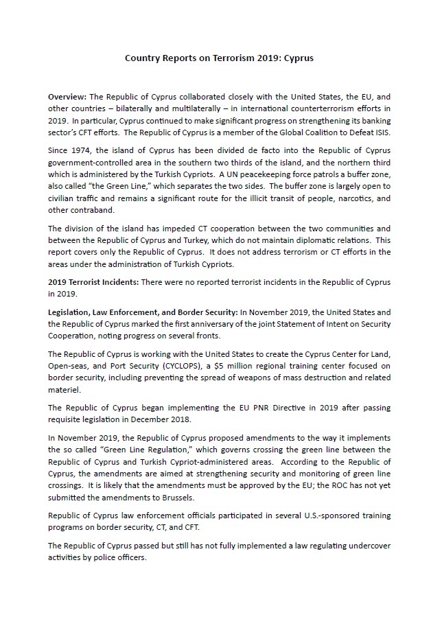 | Yayın Adı | Country Reports on Terrorism 2019: Cyprus |