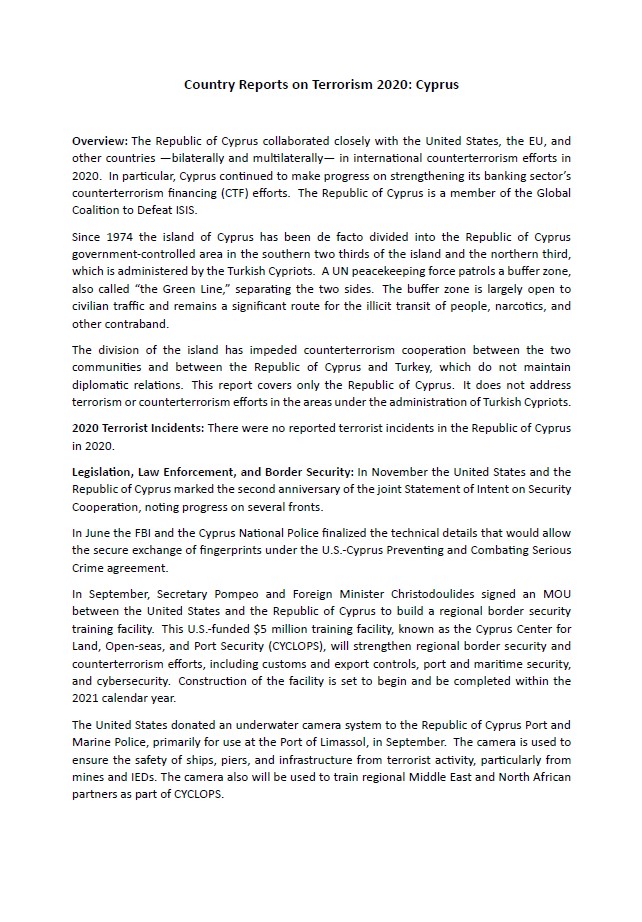 | Yayın Adı | Country Reports on Terrorism 2020: Cyprus |