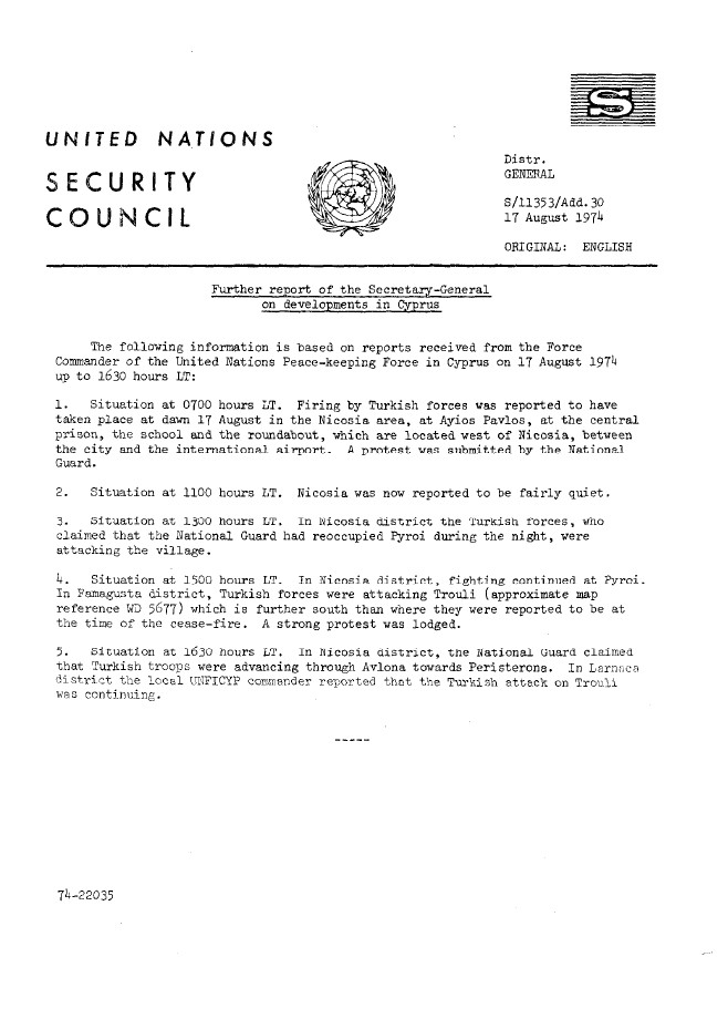 | Yayın Adı | Further report of the Secretary-General on developments in Cyprus |