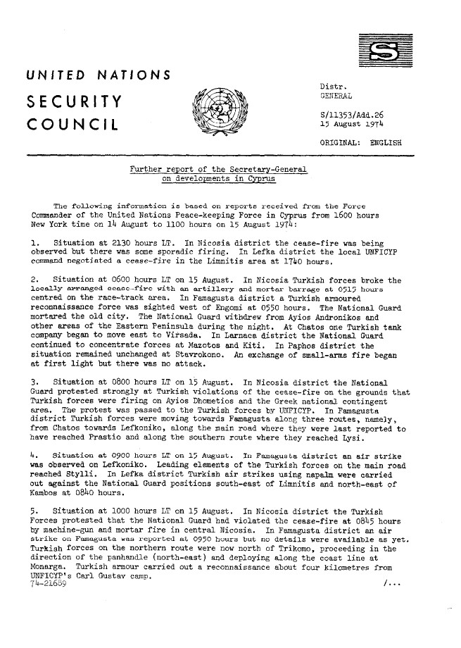 | Yayın Adı | Further report of the Secretary-General on developments in Cyprus |