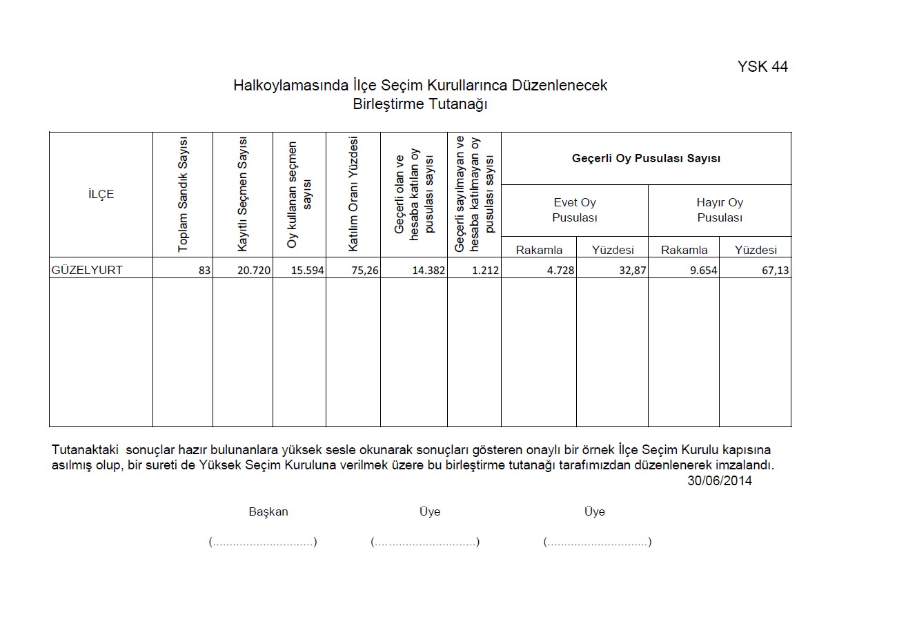 | Yayın Adı | Halk oylamasında ilçe seçim kurullarınca düzenlenecek birleştirme tutanağı |