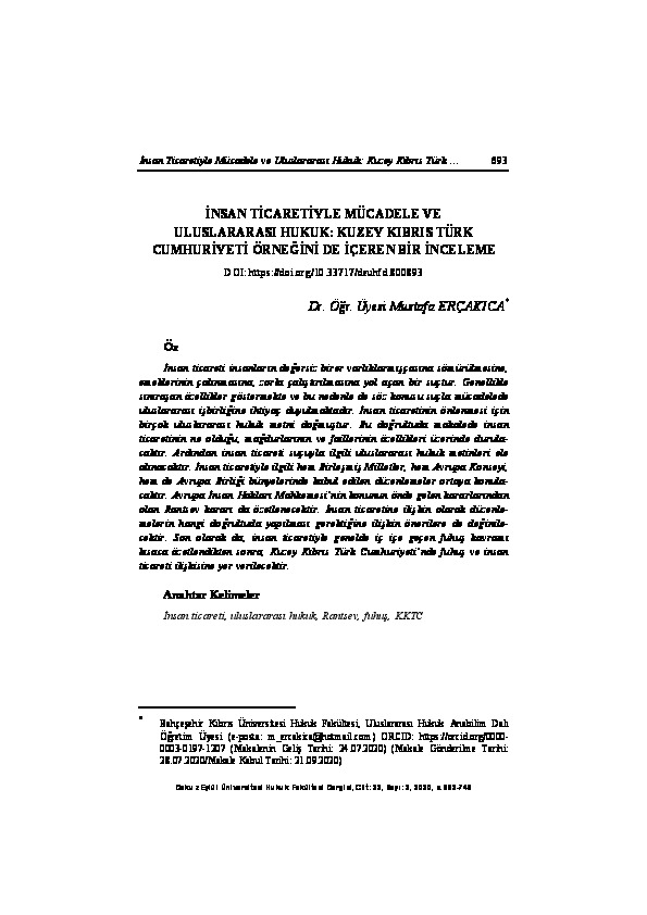 | Yayın Adı | İnsan ticaretiyle mücadele ve uluslararası hukuk: Kuzey Kıbrıs Türk Cumhuriyeti örneğini de içeren bir inceleme |