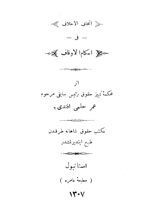 Ömer Hilmi Efendi’nin yazmış olduğu en önemli eserdir. Aslı Osmanlı Türkçesi ile yazılan bu kitap ilk olarak (h. 1307) yılında Matbaa-i Amire’de basılmıştır. Vakıf mevzuatı ve deyimleri açısından oldukça ehemmiyetli bir yere sahip, vakıflar hukukunu en açık biçimde açıklayan, detayıylarıyla anlatan Mecelle üslubuyla yazılmış, bölümler ve fasıllara ayrılarak maddeler halinde oluşturulmuş bir kaynak kitap niteliğindedir.