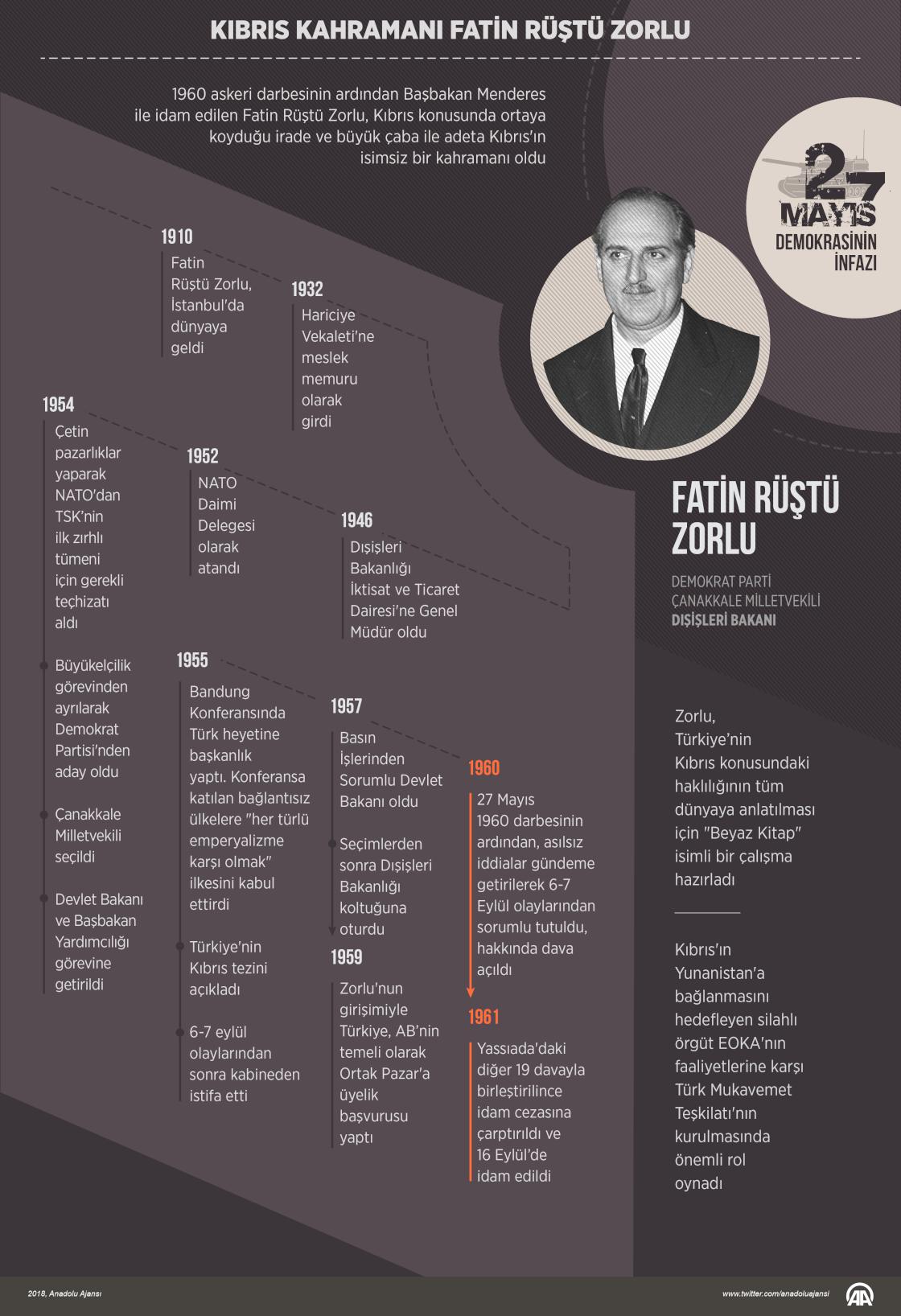 Merhum Başbakan Adnan Menderes ile 27 Mayıs 1960 askeri darbesinin ardından idam edilen Fatin Rüştü Zorlu, Kıbrıs’ın tekrar kazanılması için büyük gayret gösteren isimsiz kahramanlardandı.