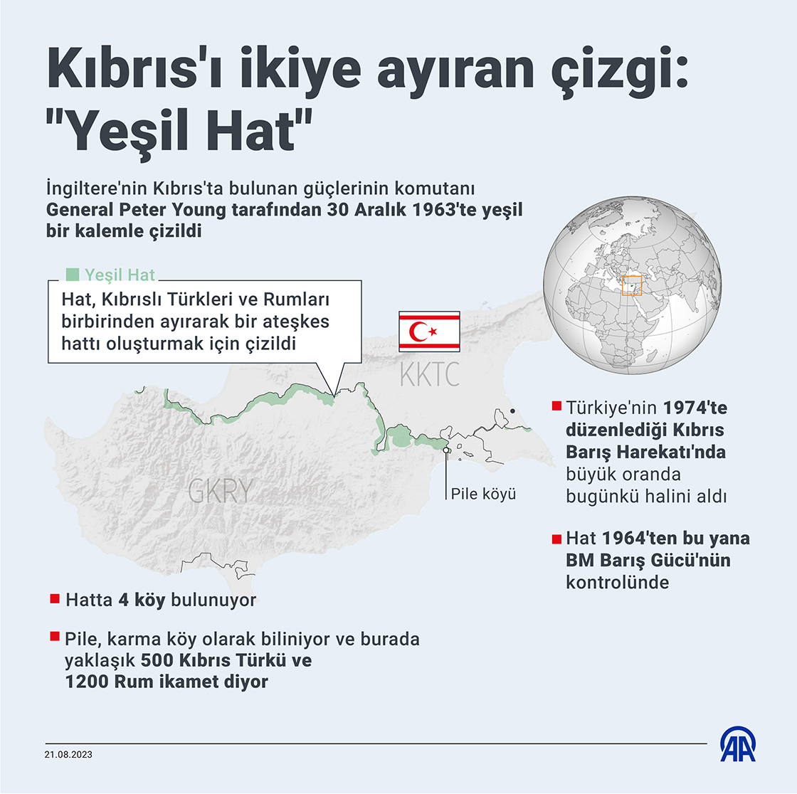 İngiliz generalin 1963’te kalemle çizdiği ve Birleşmiş Milletler’in (BM) kontrolünde yer alan 180 kilometrelik ‘Yeşil Hat’, Kuzey Kıbrıs Türk Cumhuriyeti’nin (KKTC) Pile-Yiğitler Yolu Projesi’ne başlamasının ardından yeniden gündemde.