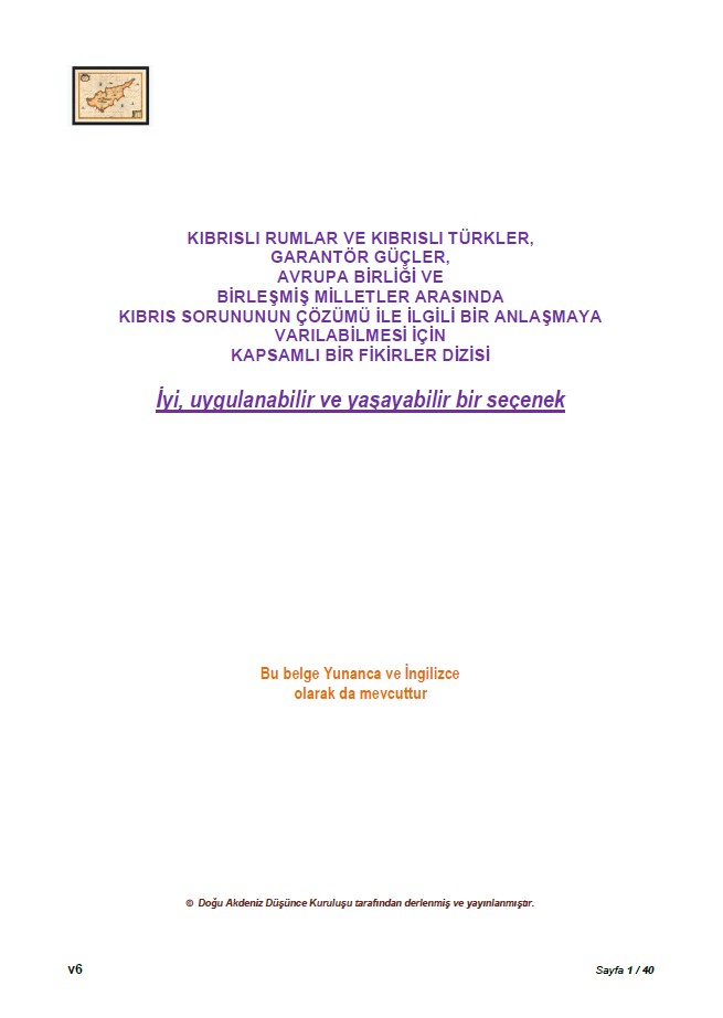 | Yayın Adı | Kıbrıslı Rumlar ve Kıbrıslı Türkler, Garantör Güçler, Avrupa Birliği ve Birleşmiş Milletler Arasında Kıbrıs Sorununun Çözümü ile İlgili Bir Anlaşmaya Varılabilmesi İçin Kapsamlı Bir Fikirler Dizisi |