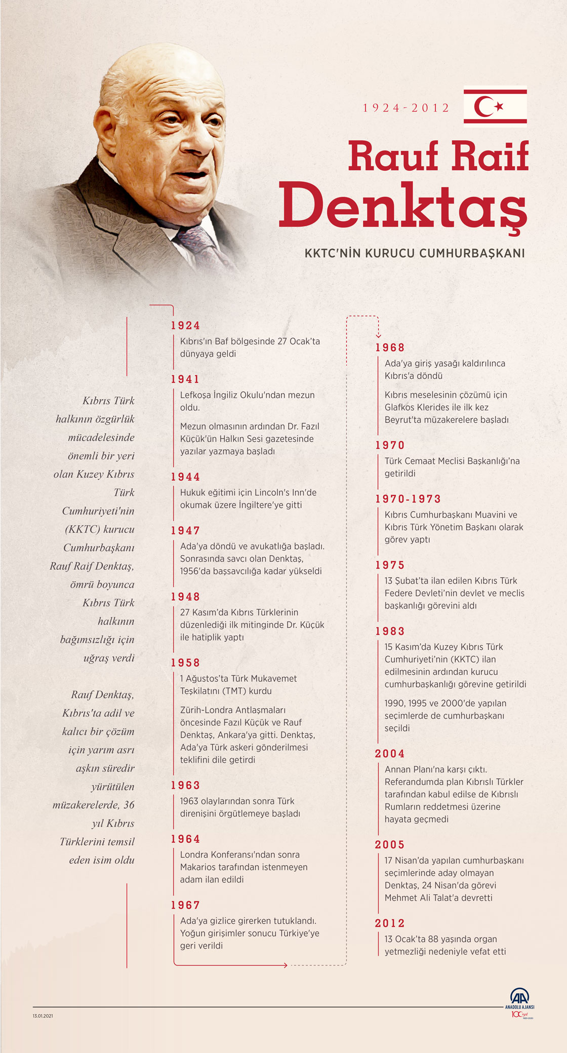 Kıbrıs Türk halkının özgürlük mücadelesinde önemli bir yeri olan Kuzey Kıbrıs Türk Cumhuriyeti’nin (KKTC) kurucu Cumhurbaşkanı Rauf Raif Denktaş, ömrü boyunca Kıbrıs Türk halkının bağımsızlığı için uğraş verdi.