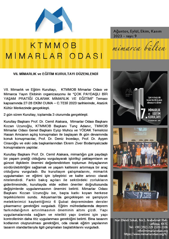 Yayınlayan | Kıbrıs Türk Mühendis ve Mimar Odaları Birliği (KTMMOB) Mimarlar Odası |