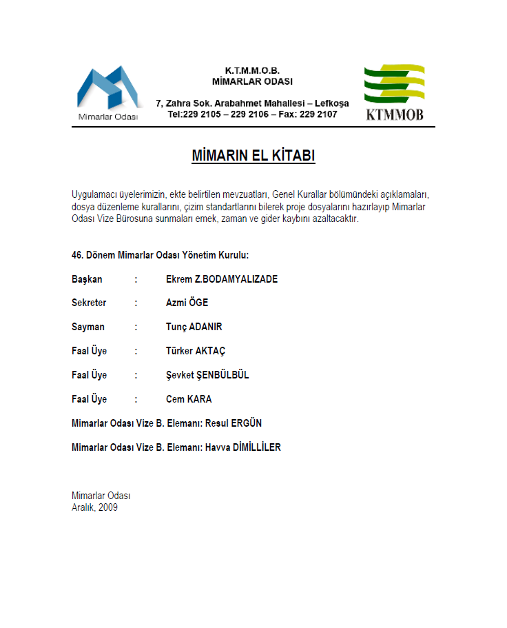 | Yayınlayan | Kıbrıs Türk Mühendis ve Mimar Odaları Birliği (KTMMOB) Mimarlar Odası |