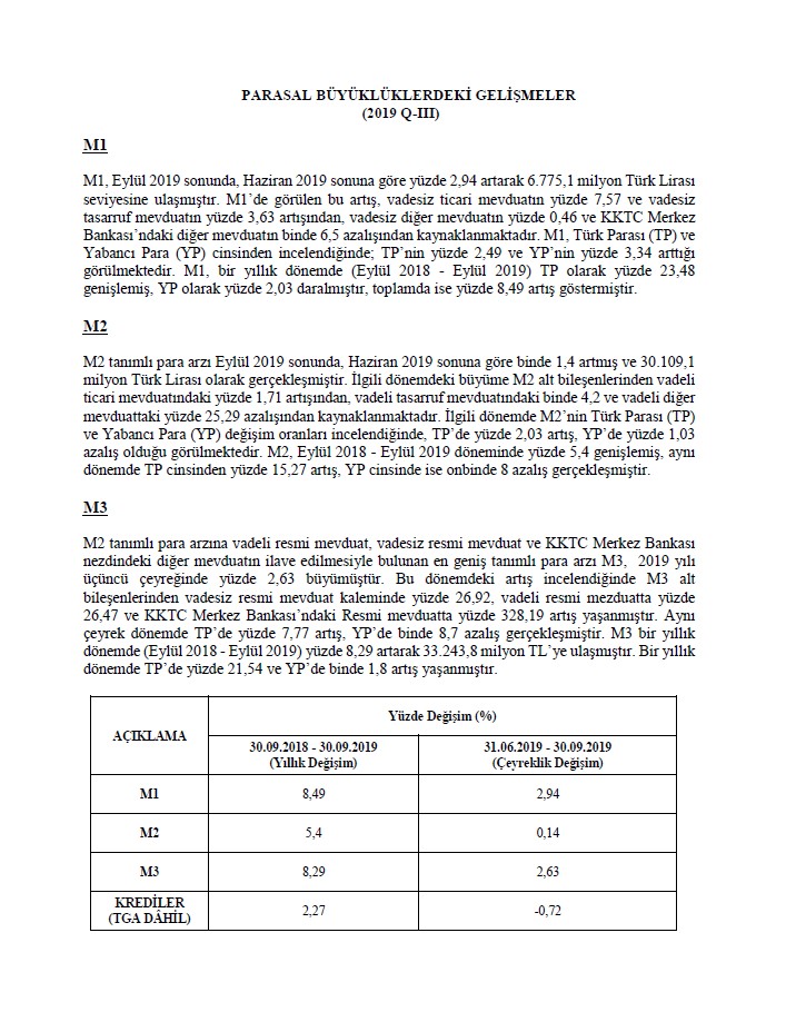 | Yayın Adı | Para arzı raporu: Parasal büyüklüklerdeki gelişmeler (2019-III) |