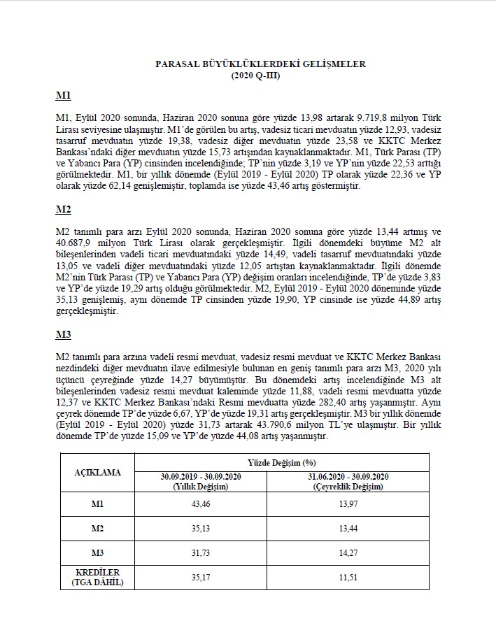 | Yayın Adı | Para arzı raporu: Parasal büyüklüklerdeki gelişmeler (2020-III) |