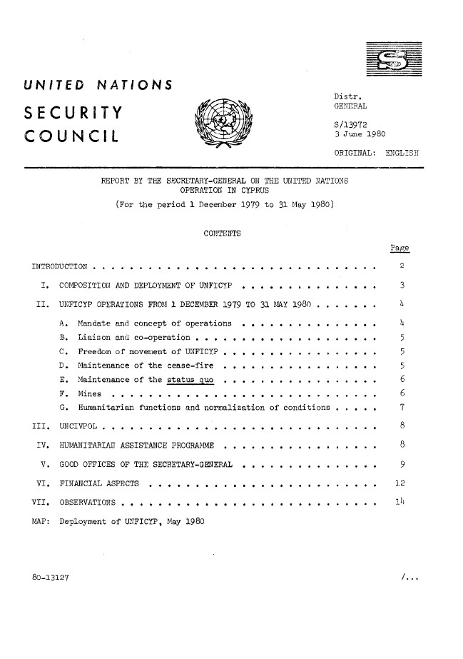 | Yayın Adı | Report by the Secretary-General on the United Nations operation in Cyprus for the period 1 December 1979 to 31 May 1980 |