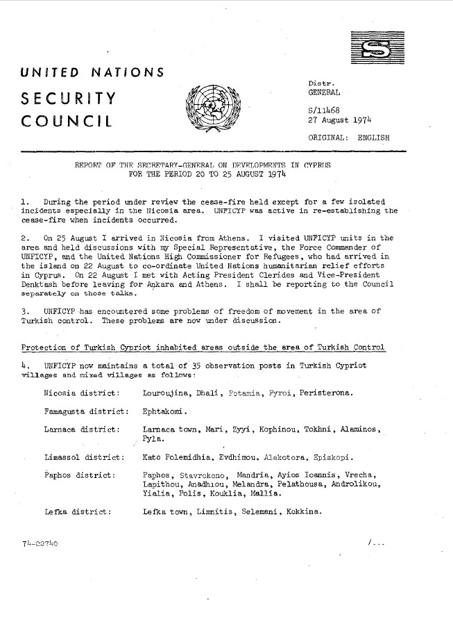 | Yayın Adı | Report of the Secretary-General on developments in Cyprus for the period 20 to 25 August 1974 |