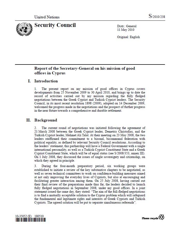 | Yayın Adı | Report of the Secretary-General on his mission of good offices in Cyprus |