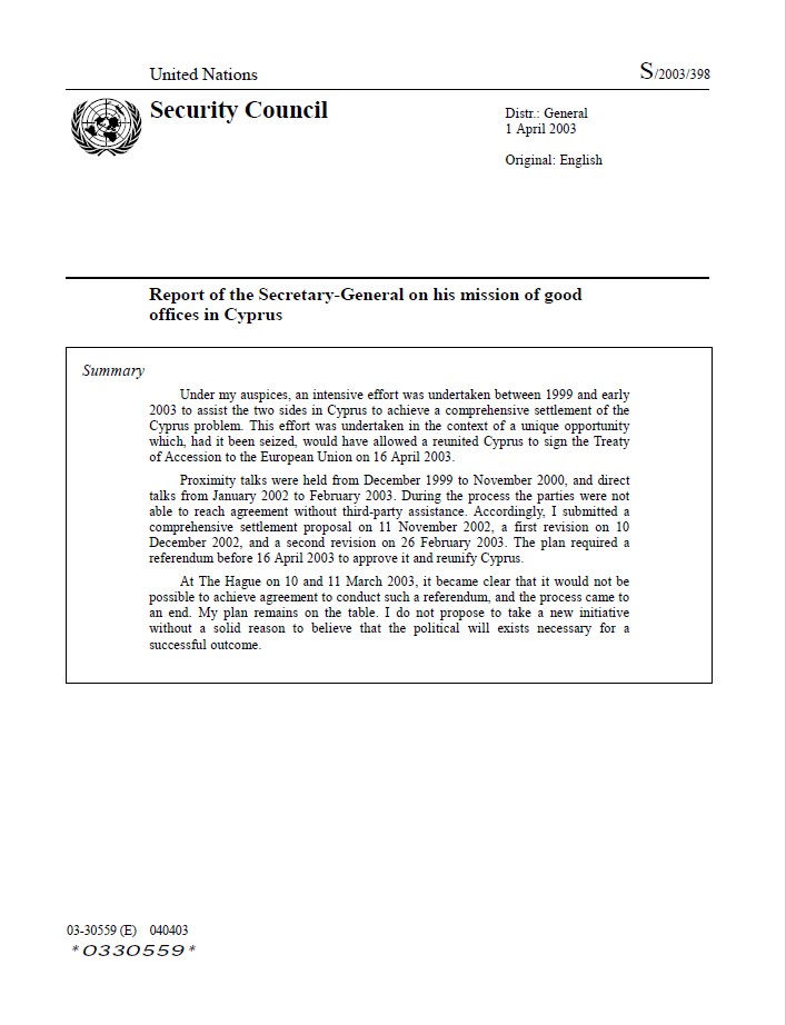 | Yayın Adı | Report of the Secretary-General on his mission of good offices in Cyprus |