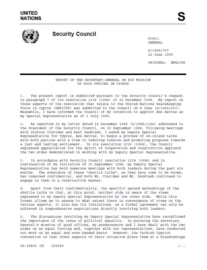 | Yayın Adı | Report of the Secretary-General on his mission of good offices in Cyprus |
