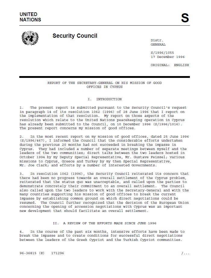| Yayın Adı | Report of the Secretary-General on his mission of good offices in Cyprus |