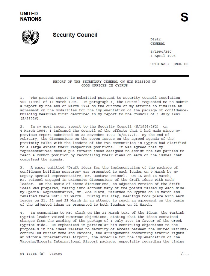 | Yayın Adı | Report of the Secretary-General on his mission of good offices in Cyprus |