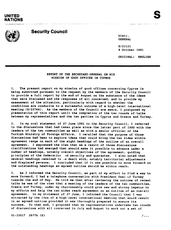 | Yayın Adı | Report of the Secretary-General on his mission of good offices in Cyprus |