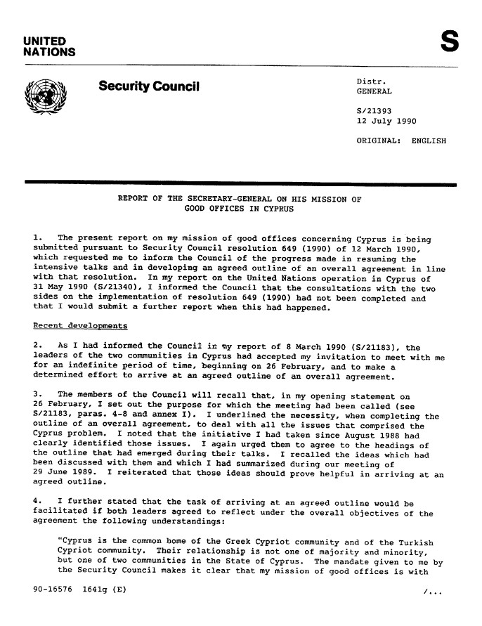 | Yayın Adı | Report of the Secretary-General on his mission of good offices in Cyprus |