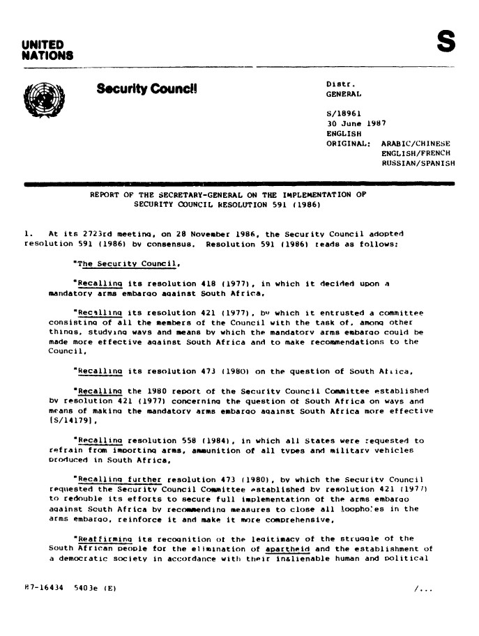 | Yayın Adı | Report of the Secretary-General on the implementation of Security Council resolution 591 (1986) |