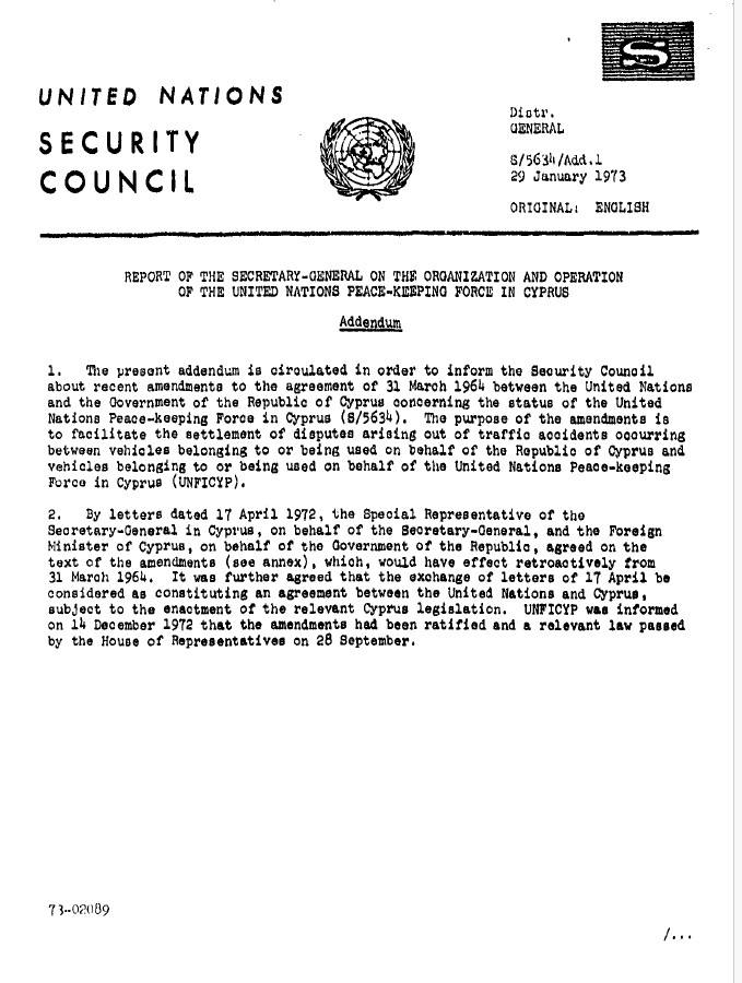 | Yayın Adı | Report of the Secretary-General on the organization and operation of the United Nations Peace-Keeping Force in Cyprus : addendum |