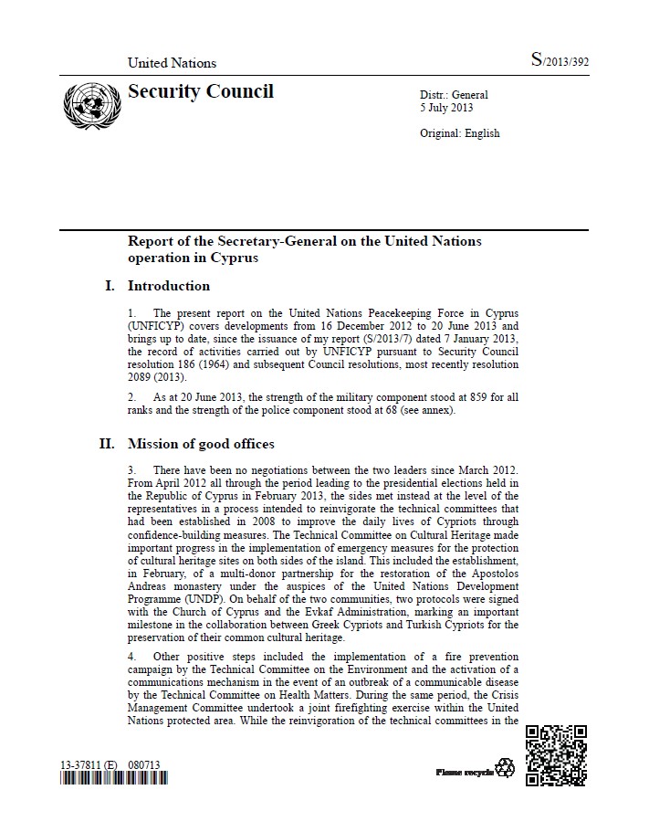 | Yayın Adı | Report of the Secretary-General on the United Nations operation in Cyprus |