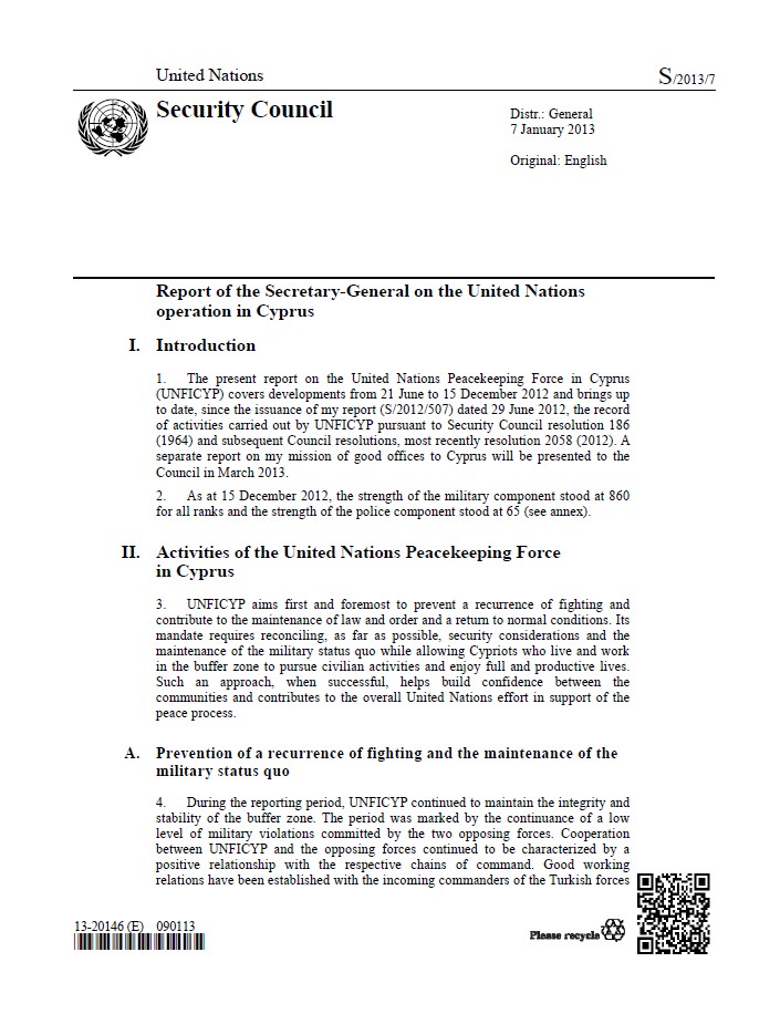 | Yayın Adı | Report of the Secretary-General on the United Nations operation in Cyprus |