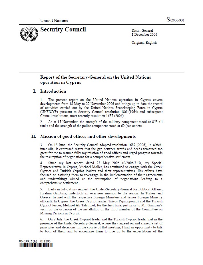 | Yayın Adı | Report of the Secretary-General on the United Nations operation in Cyprus |