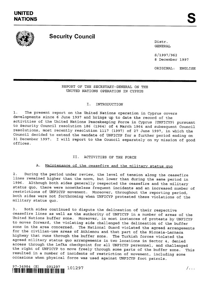| Yayın Adı | Report of the Secretary-General on the United Nations Operation in Cyprus |