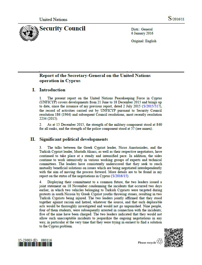 | Yayın Adı | Report of the Secretary-General on the United Nations operation in Cyprus |