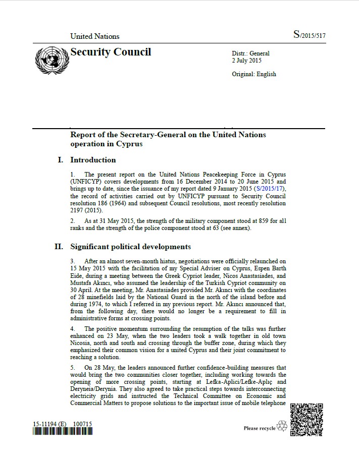 | Yayın Adı | Report of the Secretary-General on the United Nations operation in Cyprus |