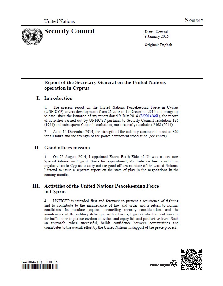 | Yayın Adı | Report of the Secretary-General on the United Nations operation in Cyprus |