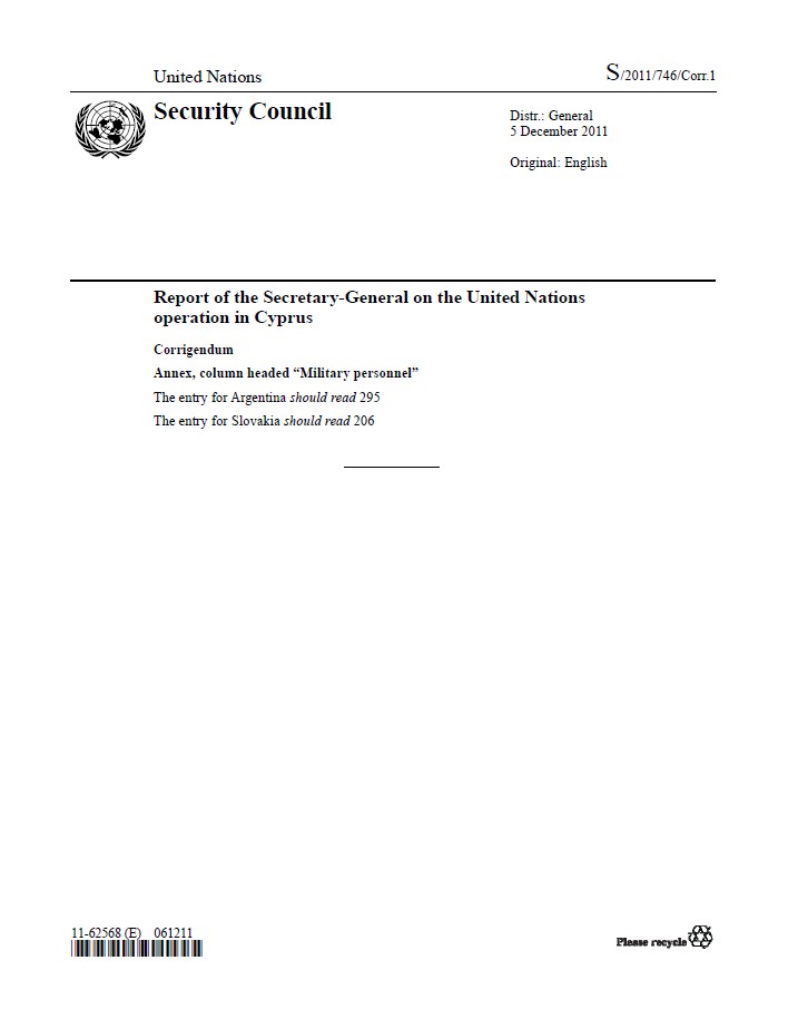 | Yayın Adı | Report of the Secretary-General on the United Nations operation in Cyprus: Corrigendum |