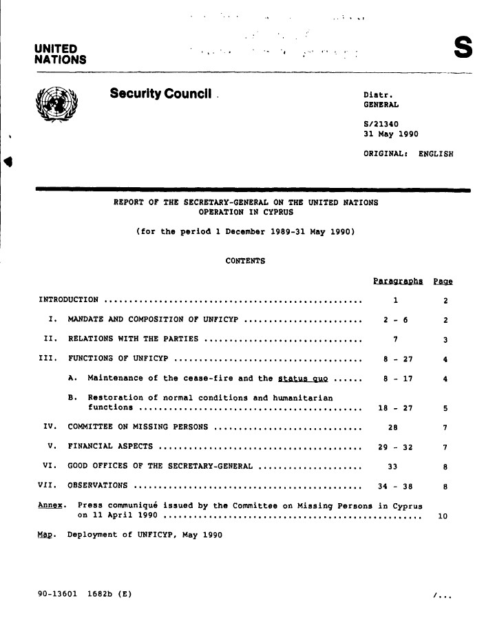 | Yayın Adı | Report of the Secretary-General on the United Nations Operation in Cyprus, for the period 1 December 1989-31 May 1990 |