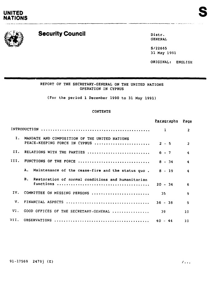 | Yayın Adı | Report of the Secretary-General on the United Nations Operation in Cyprus, for the period 1 December 1990 to 31 May 1991 : Security Council |