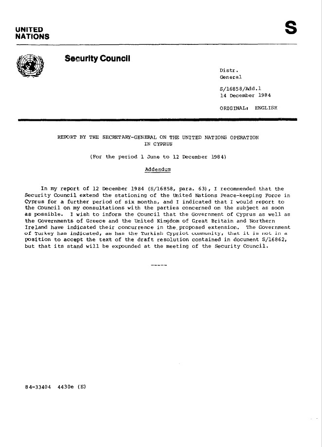 | Yayın Adı | Report of the Secretary-General on the United Nations Operation in Cyprus for the period 1 June to 12 December 1984 |
