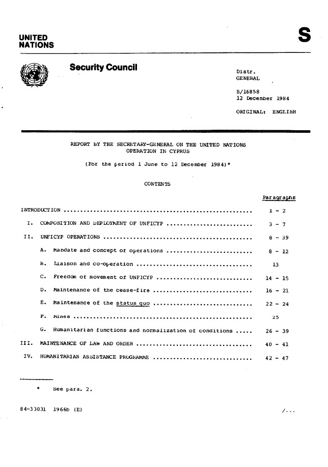 | Yayın Adı | Report of the Secretary-General on the United Nations Operation in Cyprus for the period 1 June to 12 December 1984 |