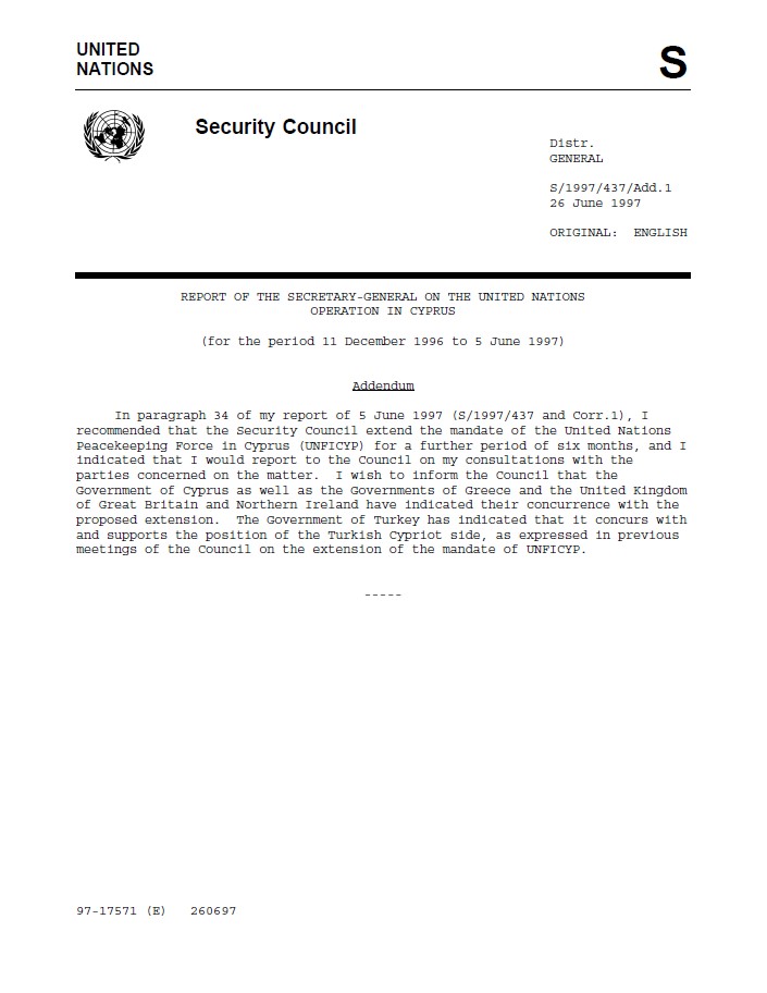 | Yayın Adı | Report of the Secretary-General on the United Nations Operation in Cyprus for the period 11 December 1996 to 5 June 1997 |