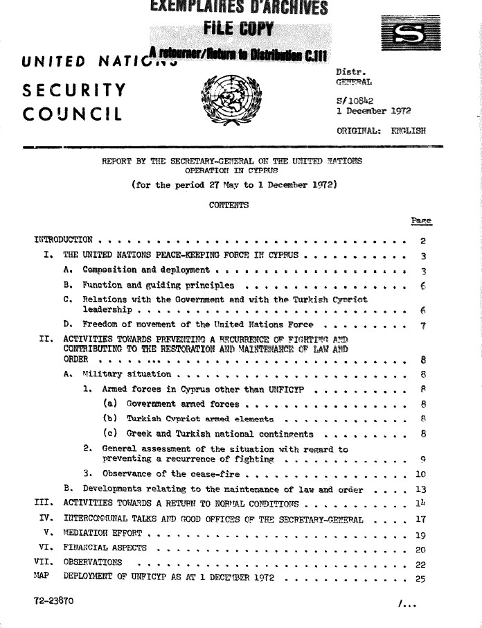 | Yayın Adı | Report of the Secretary-General on the United Nations Operation in Cyprus (for the period 27 May to December 1972) |