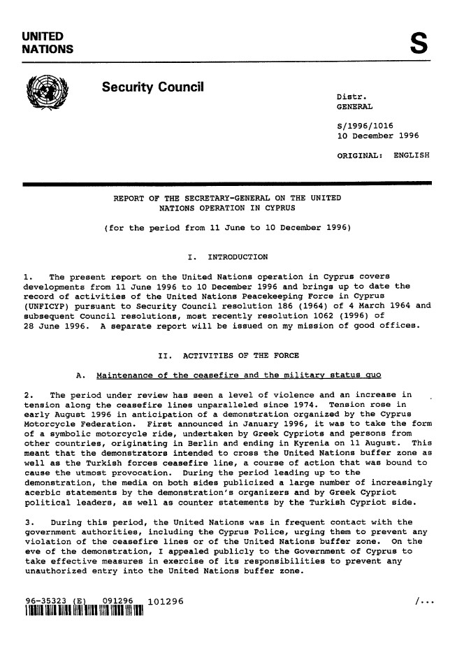 | Yayın Adı | Report of the Secretary-General on the United Nations Operation in Cyprus for the period from 11 June to 10 December 1996 |